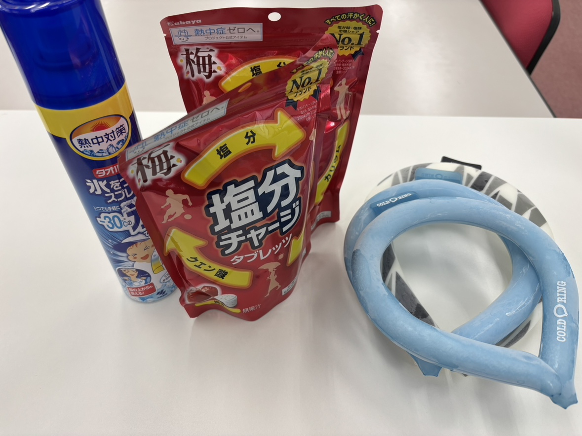 首につけてひんやりとするネックリングも準備しており、利用者さんもネックリングを着用して清掃に取り組んでいます。