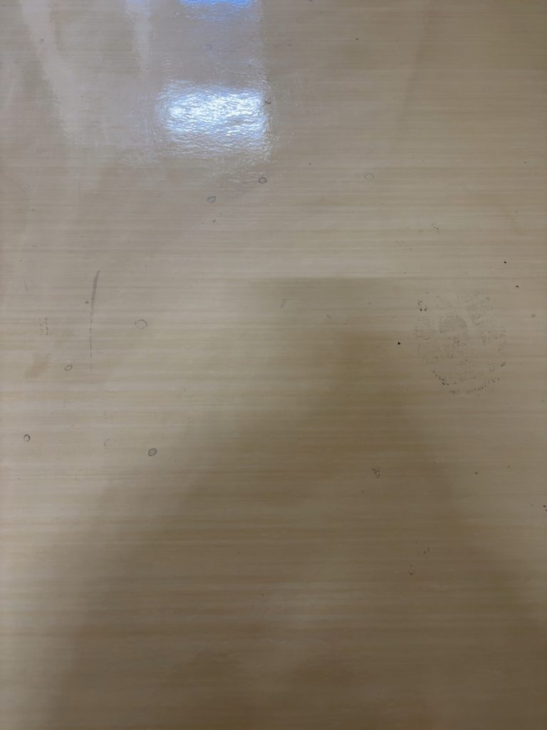 学校ということもあり、生徒さん、先生、外部の方など日々使われるため廊下は掃除をしても、掃除をしても汚れています…。
