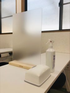 消毒は業務・昼休憩の前後に、換気は窓を開ける時間を決めて行っています⌚